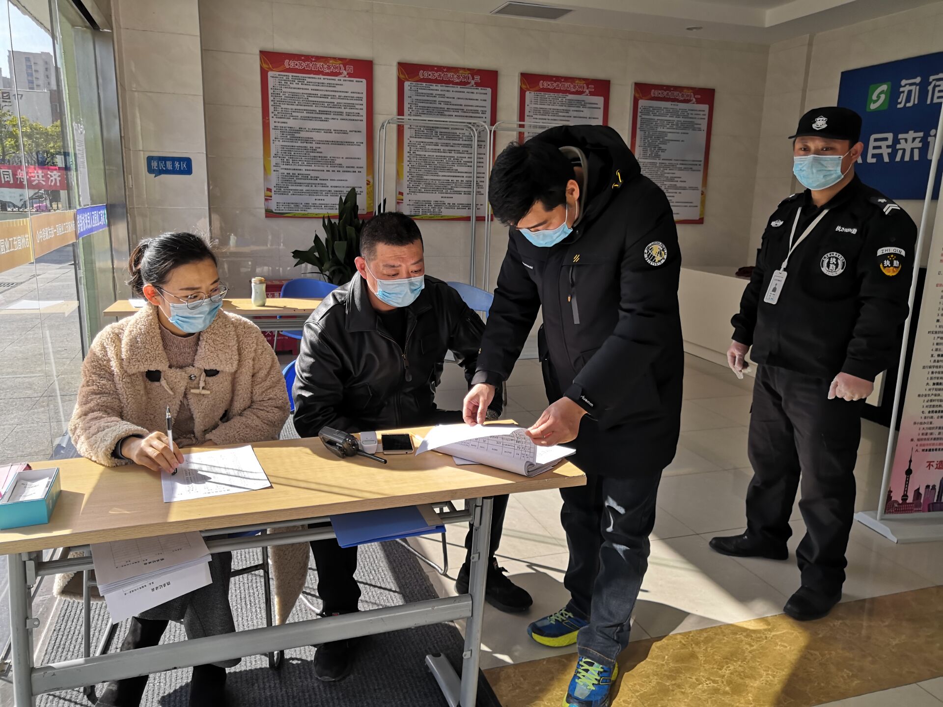 建發(fā)公司物業(yè)管理部經(jīng)理范以加,大年初二他就從老家返回奔赴崗位奮戰(zhàn)在一線,部署檢查落實(shí)部門物業(yè)項(xiàng)目疫情防控工作,至今一天也沒有休息。他說:“物業(yè)管理部承擔(dān)著園區(qū)公舍、蘇宿工業(yè)坊、夢家園、外國語學(xué)校等多個項(xiàng)目的物業(yè)管理工作,涉及范圍廣、面對人員多,特別是園區(qū)公舍作為園區(qū)唯一的企業(yè)職工集宿區(qū),企業(yè)復(fù)工后將有4000余名入住員工陸續(xù)返崗,是園區(qū)疫情防控工作的重點(diǎn)和難點(diǎn),疫情防控壓力巨大。我們一刻也不能放松,馬虎不得,作為一名退伍軍人、一名黨員,我必須以身作則,沖鋒在前。”