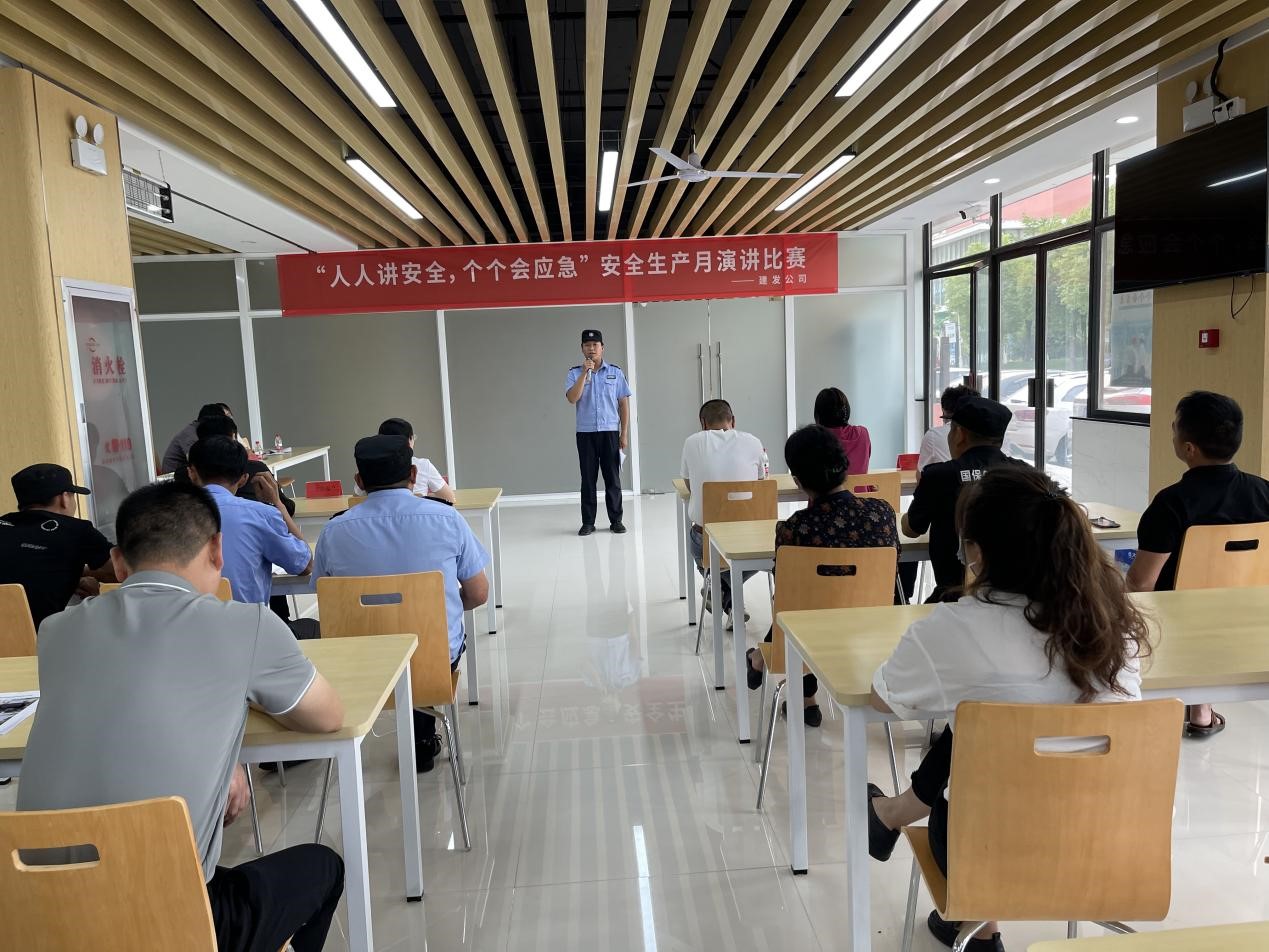 今年6月是第22個全國“安全生產(chǎn)月”,為進一步推動安全文化建設(shè),提高廣大員工安全意識,營造安全和諧的生產(chǎn)環(huán)境和安全文化氛圍,6月16日,建發(fā)公司組織安保單位開展了“人人講安全,個個會應(yīng)急”主題演講比賽。